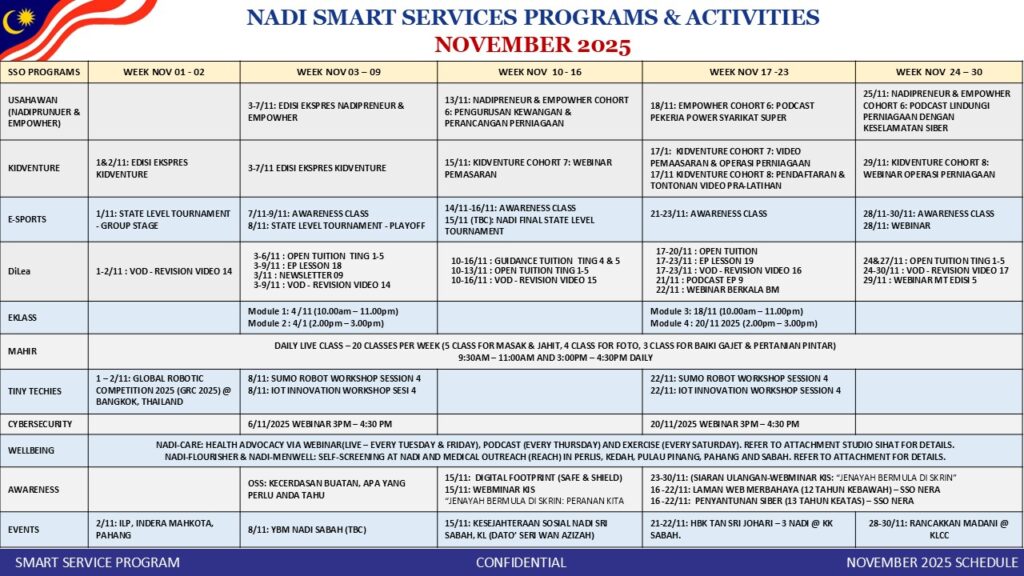 Jadual AktivitiJadual Latihan & Aktiviti